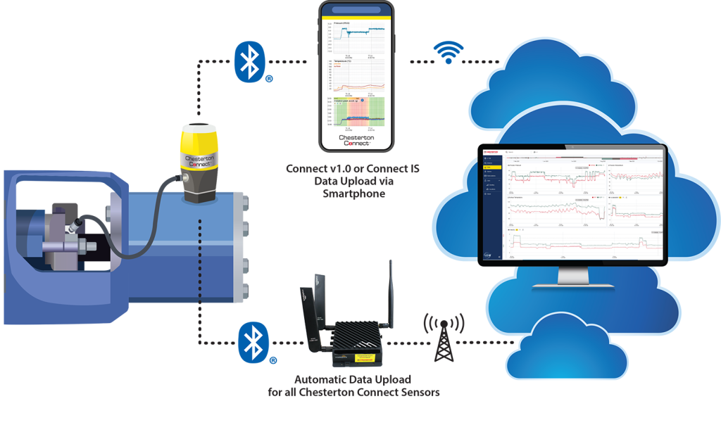 Das Chesterton Connect™ Universal Gateway ermöglicht die automatische Datenübertragung von Chesterton Connect Sensoren in die Cloud. Bei gleichzeitiger Nutzung der Chesterton Connect Cloud erleichtert das Universal Gateway die Fernüberwachung von Aggregaten, um den Betrieb und die Anlagenzuverlässigkeit zu verbessern.